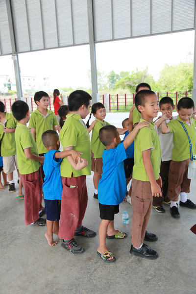 เราไปกันตอนบ่าย หลังจากน้องๆตื่นแล้ว น้องกลุ่มแรกลงมากันประมาณ 15 คน ส่วนน้องที่เหลือตามลงมาหลังจากเรียนเสร็จแล้ว เราเริมกันด้วยเกมแนะนำตัว